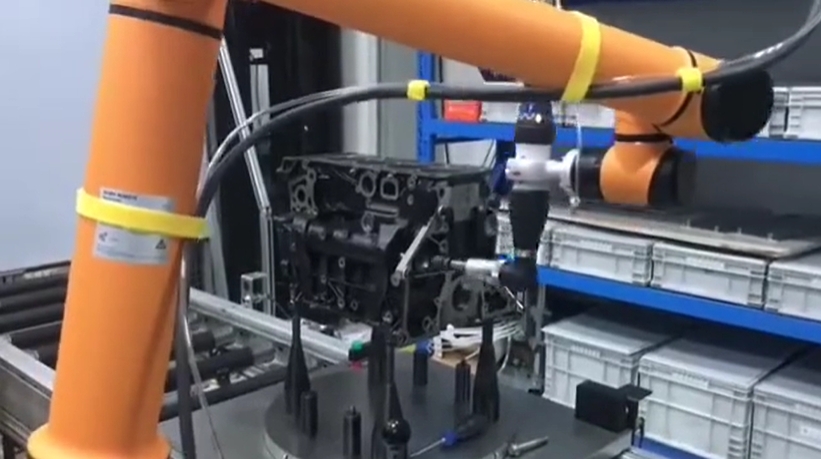 重庆遨博经过多年的技术攻关和优化应用,以智能协作机器人为核心,成功打造出具有全流程自动化操作的 “机器人自动拧紧系统”,该系统凭借高性能协作机器人高精确度、高稳定性、高柔性化的优势,可以实现发动机装配拧紧过程中的螺栓螺孔自动识别适配、拧紧扭矩自适应调节、自动快速更换套筒等,有效替代人工,实现全流程自动化。