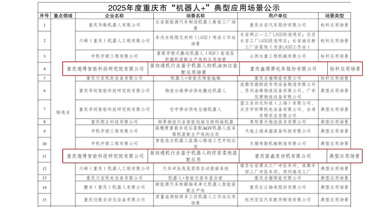 目前,该机器人系统已成功实施应用,项目案例成功入选2025年度重庆市 “机器人+” 典型应用场景。